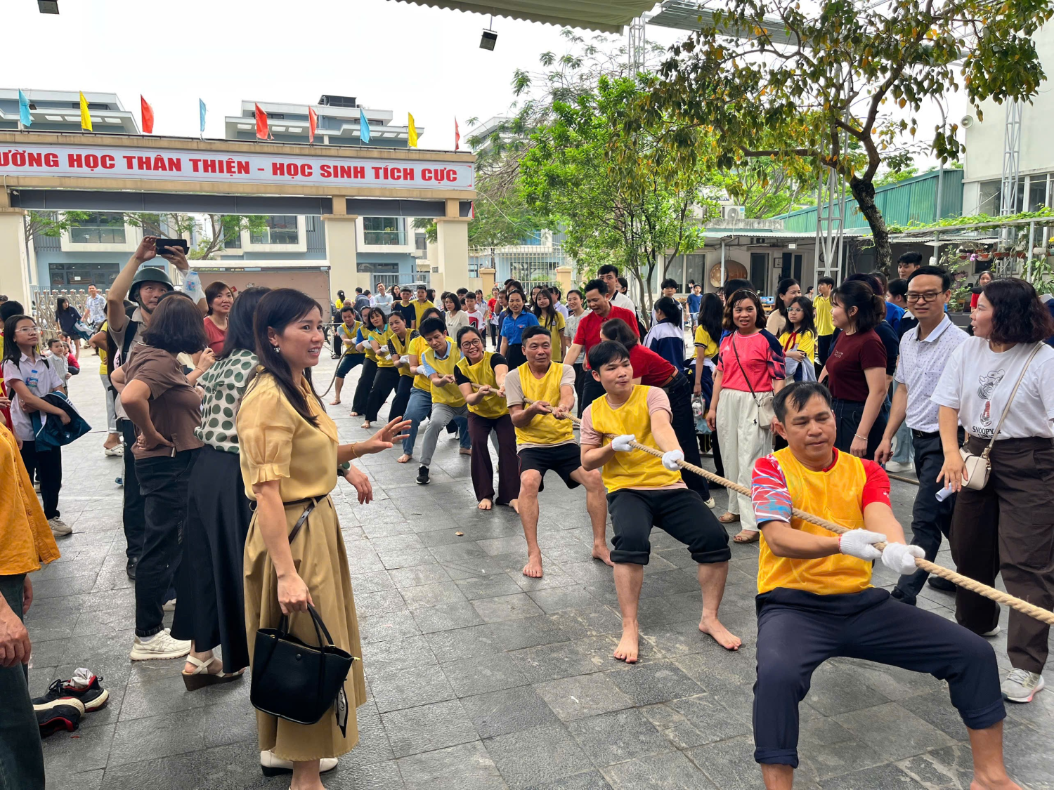 Điểm đặc biệt của ngày hội năm nay chính là các trận thi đấu giao hữu giữa liên quân Thầy cô và liên quân phụ huynh học sinh. Hình ảnh các thầy giáo gác lại vẻ nghiêm nghị trên bục giảng để lăn xả trên sân cầu trong những trận “kéo co” hay các cô giáo cổ vũ nhiệt tình cho học trò đã xóa nhòa khoảng cách, thắt chặt tình cảm thầy trò dưới mái trường mang tên nhà bác học Lê Quý Đôn.