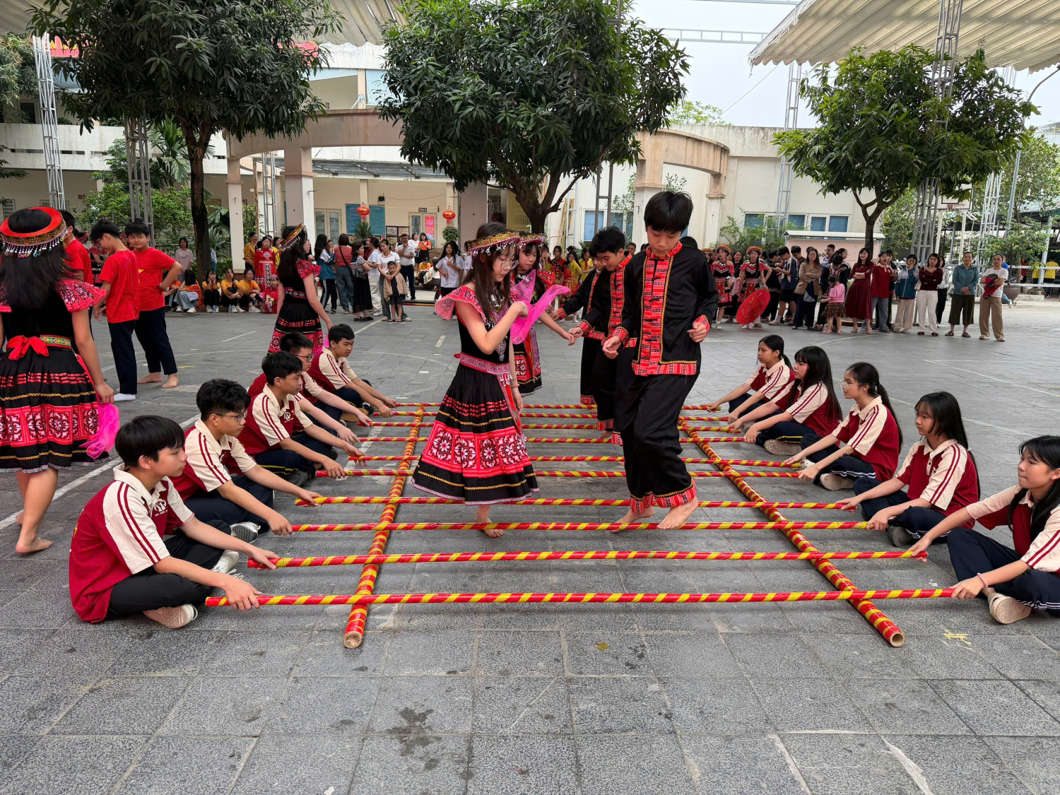 2. Hội thao dân gian sáng tạo: Thay vì những môn thi truyền thống đơn điệu, nhà trường đã lồng ghép các trò chơi vận động mạnh như: Kéo co tiếp sức, bịt mắt bắt vịt và chơi chắt chuyền.