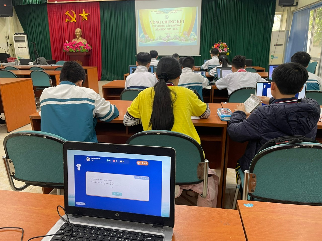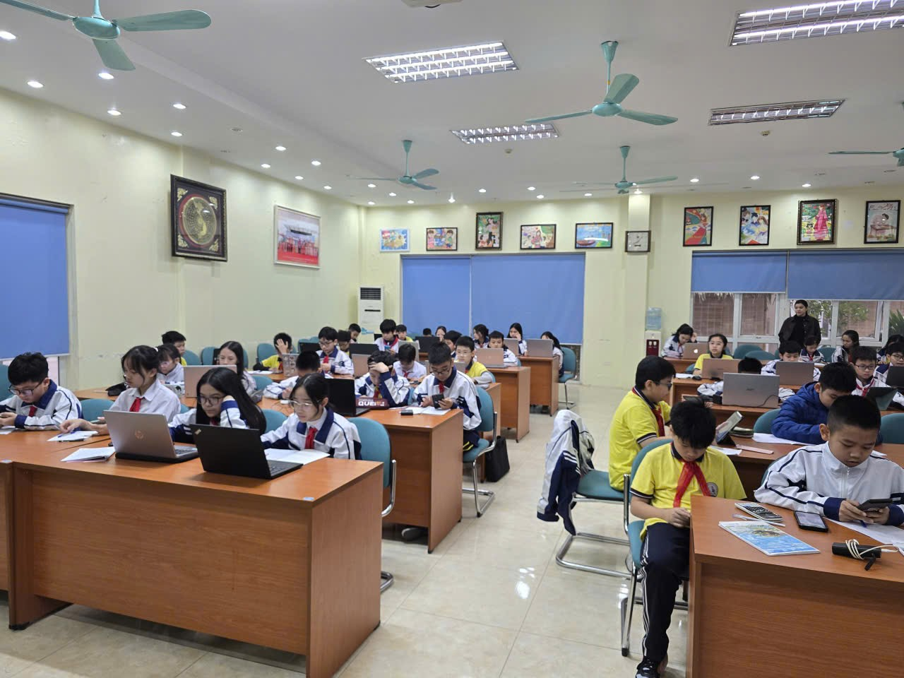 Ngay từ sáng sớm, không khí tại các phòng máy tính đã trở nên vô cùng khẩn trương. Những gương mặt đầy tự tin nhưng không kém phần hồi hộp của các em học sinh khối 6, 7, 8 và 9 đã tạo nên một nguồn năng lượng tích cực lan tỏa khắp trường.