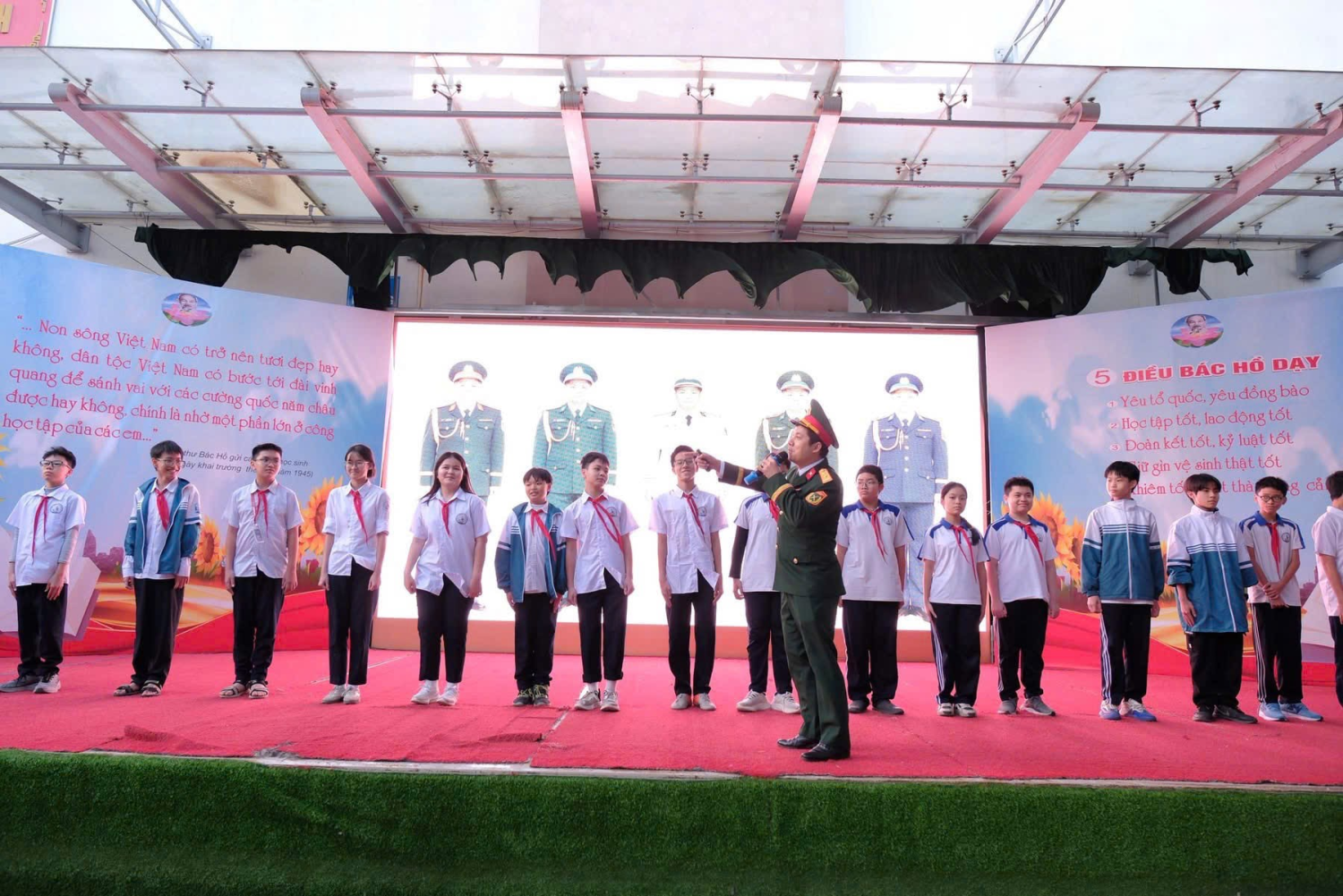 Dưới sự điều hành của Ban Giám hiệu và Liên đội nhà trường, buổi lễ không chỉ là nghi thức mà đã trở thành một lớp học lịch sử sống động. Những đôi mắt trẻ thơ chăm chú dõi theo từng hình ảnh, những cánh tay giơ cao khi tham gia tìm hiểu về các mốc son chói lọi của quân đội ta. Điểm nhấn của chương trình là phần giao lưu với các bác cựu chiến binh.